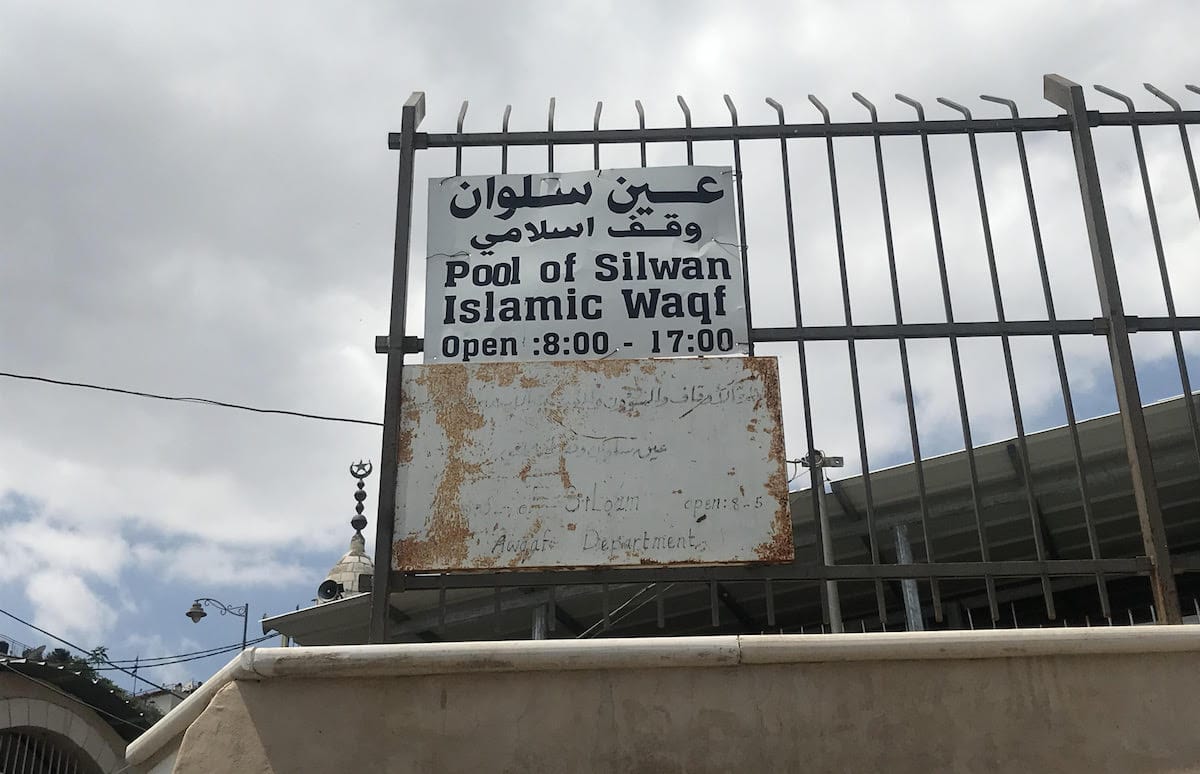 على جدران بركة سلوان الأثرية، لافتة نال منها الصدأ، لكن ما زال بالإمكان قراءتها، تقول: "وقفٌ إسلامي". وإذا كنت قادماً من جهة جامع العين، "سيقف" بينك وبين هذا الوقف باب حديدي دوّار تابع للموقع الأثري الاستيطاني "مدينة داوود"، يخدم المغادرين البركة فقط، ويمنعك من الدخول.