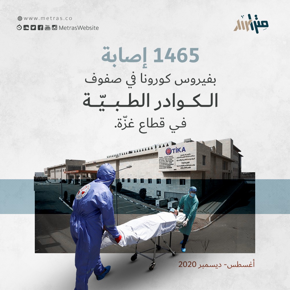 في 12 يناير/ كانون الثاني الجاري، أعلنت وزارةُ الصحّة في غزّة عن وفاة الطبيب وليد عفانة متأثراً بإصابته بفيروس كورونا. في ديسمبر ونوفمبر الماضيين، توفي ثلاثة آخرون من الطواقم الطبيّة نتيجة إصابتهم بالفيروس؛ هم الطبيب مجدي عياد، أخصائي أمراض القلب في مجمع الشفاء الطبيّ، والممرض عادل السيد، أحد ممرضي مستشفى أبو يوسف النجار برفح، والممرض الحكيم أحمد نوفل، الذي عَمِل في مركز شهداء تل السُّلطان الصحّي برفح.