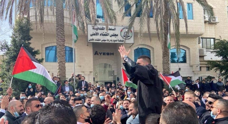 على إثر ذلك، أصدرت مؤسسات المجتمع المدنيّ الفلسطينيّ، ونادي القضاة، وبعض الأحزاب السياسيّة، بياناتٍ تُعبّـرُ عن رفض هذه التعديلات وتدعو إلى احترام السّلطة القضائيّة. وكانت نقابة المحامين الفلسطينيين في صدارة المشهد الرافض، إذ قادت الاحتجاجات في الشّارع، ودعت إلى مقاطعة مجلس القضاء الأعلى3مجلس القضاء الأعلى هو هيئة إدارية تمثّل القضاء الفلسطيني، يتكون من رئيس وستة أعضاء آخرين. تعنى برسم السياسات القضائية وإقرار الموازنة والإشراف عليها، وتنسيب القضاة للرئيس، وتلقي الشكاوى على القضاة، واتخاذ القرارات بشأن إنهاء خدمات القضاة أو ندبهم، وإدارة المحاكم وإعداد لوائح بقية الدوائر مثل دائرة التفتيش والفنية، وإدارة شؤون التدريب وتظلمات القضاة. والتشكيلات القضائية الجديدة، بالإضافة إلى تعليق العمل في المحاكم لأيامٍ متقطعة، والاعتصام في المحاكم وتنظيم اعتصام مركزي أمام مجلس القضاء.