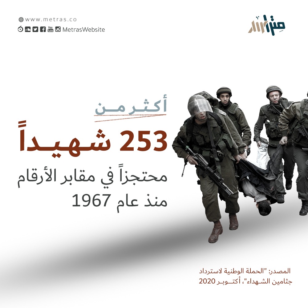تقدر "الحملة الوطنية لاسترداد جثامين الشهداء والكشف عن المفقودين"، والتي انطلقت عام 2008، أعداد جثامين الشهداء والرفات المتفرّقة في مقابر الأرقام حتى اليوم بما يفوق الـ253 جثماناً، منهم شهداء من العام 1968. بعد مداولات قضائيّة وسلسلة من الاحتجاجات، حدّد جيش الاحتلال مكان دفن 123 منهم في فبراير/ شباط الماضي. لكنّه ما زال يماطل حتى الآن في إنشاء قاعدةِ بياناتٍ جينيّة لتحديد هويات الشهداء، كما أنّه يربط أي تقدمٍ في قضية مقابر الأرقام بقرار الـ"كابينت" منذ عام 2017.