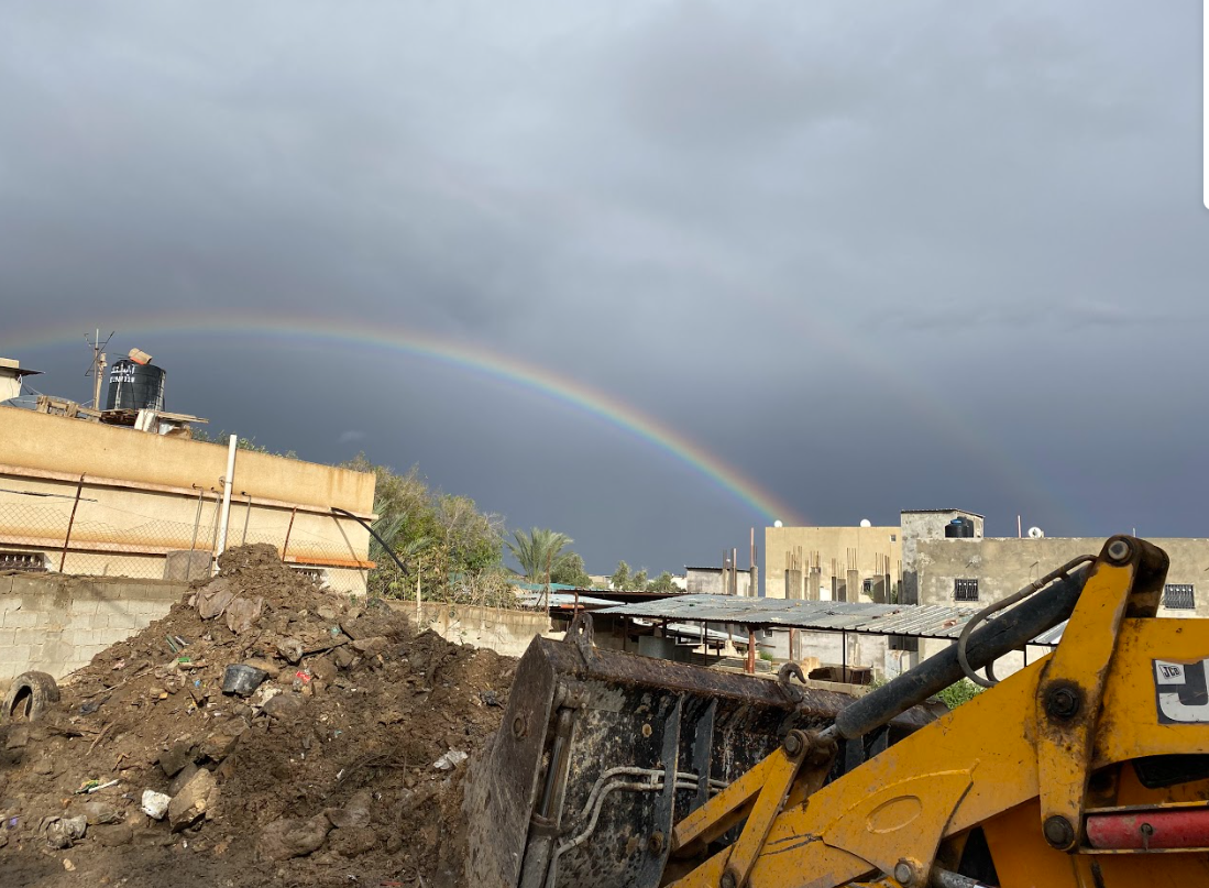 في سماء مخيّم عقبة جبر جنوب غرب أريحا، انكسر ضوءُ الشمس في السابع من شباط/فبراير 2023 وتحلّل إلى قوسٍ كبيرٍ من الألوان، يُشير إليه أطفالُ المخيم ويتسابقون محاولين الوصول إليه. رغم الجوّ البارد، يقفز الأطفال خلال ركضهم داخل برك المياه، وتعلو ضحكاتهم. أحدهم يقول إنّ هذه الألوان هي أرواح الشهداء الخمسة، فيُسرع الأطفال أكثر محاولين ملامستها.