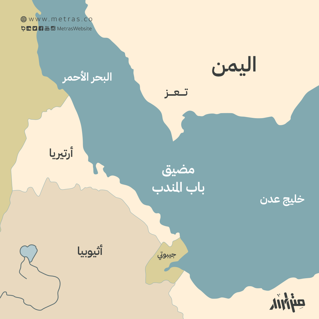 يقعُ مضيق باب المندب بين خليج عدن والبحر الأحمر، وتمرُّ السفن من خلاله للوصول عبر قناة السويس إلى البحر المتوسط فأوروبا، ويصل عرضه إلى 32 كم، وتحيط به أربع دول وهي: اليمن شرقاً، والصومال وجيبوتي جنوباً، وإريتريا غرباً، وتقع في مجراه جزيرةُ بريم اليمنية وإلى جنوبه في خليج عدن جزيرة سقطرى اليمنية.
