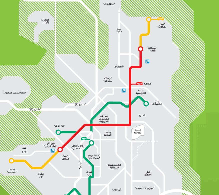 سيمتد الخطّ الأخضر، على مسافة 22.4 كيلومتراً، بواقع 37 محطّة، من "جبل المشارف" شرقاً، بالقرب من قصر المفتي الحاج أمين الحسيني - سابقاً، مروراً بمستعمرة "جفعات رام"، وبذلك يرابط بين حرمي "الجامعة العبرية" في المنطقتين، ومن ثمّ سيمتد نحو الجنوب، مروراً بـ"بيت صفافا"، ونهايةً بمستعمرة "جيلو"، الحلقة الاستيطانية الجنوبية حول القدس.