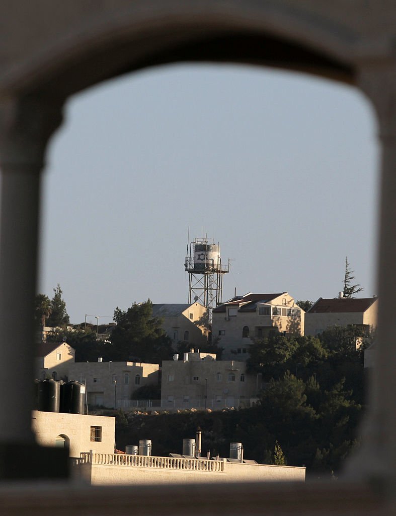 تشرين الأول، 2013، بعض بيوت مستوطنة "بسغوت" كما تظهر من نافذة أحد البيوت الفلسطينيّة في البيرة. (عباس المومني/ وكالة الصحافة الفرنسية).