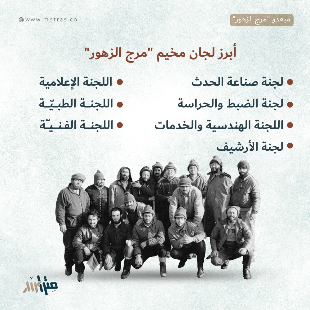 منذ اليوم الأوّل للإبعاد، بدأ المبعدون بتنظيم وترتيب أمور حياتهم، وعُيّنت للمخيم قيادة من 40 شخص تقريباً. وبعد مرور بضعة أشهر، أصبح في المخيم 50 خيّمة، عشر خيم منها كان لتقديم الخدمات والباقي للنوم.3حميدات، رمضان. مرج الزهور، صمود ومقاومة. برنامج الماجستير في الدراسات العربية المعاصرة، جامعة بيرزيت (2014).وكان المبعدون موزّعين فيها حسب المناطق القادمين منها.