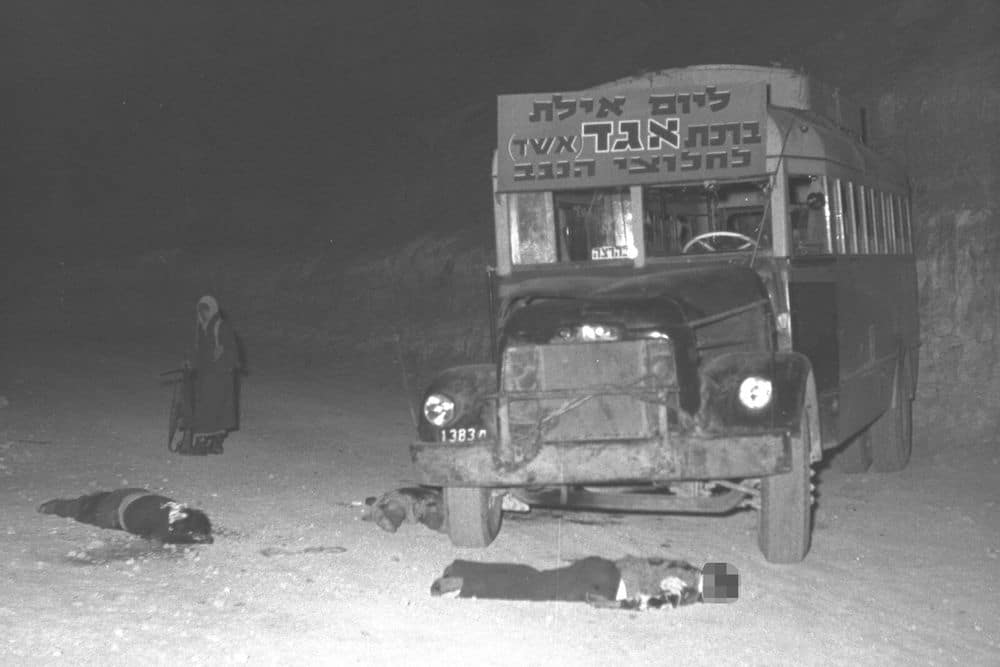 "مخابرة هاتفية من يتسحاق نافون – وصل من هيئة الأركان العامة خبر أن حافلة تٌقّل مسافرين كانت عائدة من إيلات بعد يوم 16/3 تعرّضت لإطلاق نار من كمين بالقرب من "معاليه عقرفيم". وهناك قتلى وجرحى. [...] قدّم رئيس الأركان الذي حضر الجلسة [الوزارية] تقريراً. سقط عشرة قتلى. في الرشقة الأولى قتل السائق. وبفضل معجزة لم تتدهور الحافلة إلى أسفل المنحدر الحادّ. انصبّ وابلٌ من الرصاص من جميع الجهات. بعد ذلك دخل بضعة أشخاص إلى الباص، وقتلوا وفتكوا يميناً ويساراً". موشيه شاريت. الأربعاء 17 مارس/ آذار 19541موشيه شاريت. يوميات شخصية. ترجمة عن العبرية: أحمد خليفة؛ راجع الترجمة: صبري جريس. بيروت: مؤسسة الدراسات الفلسطينية، 1996. ص161- 162..