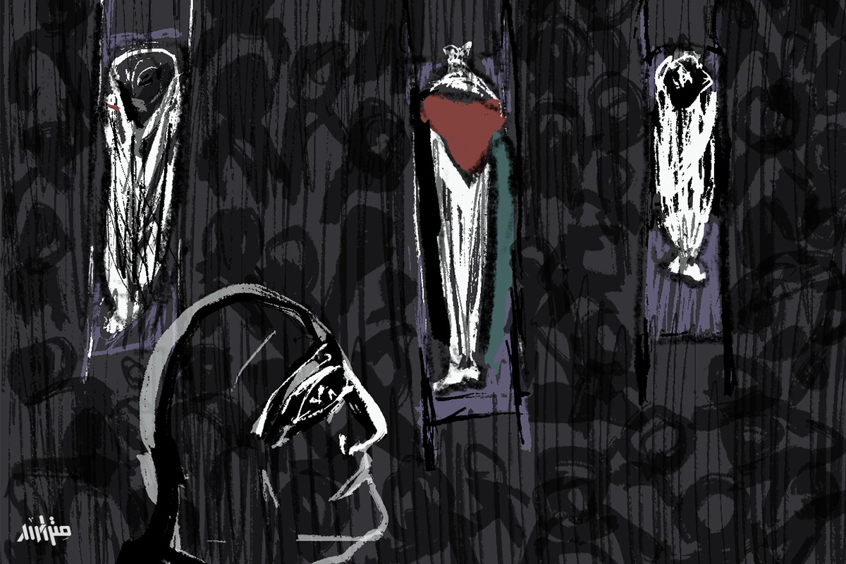 بعينين منتفختين، يحدق في الجثمان المسجى أمامه. تارةً يحيط بكفيه رأس الشهيدة، وتارة أخرى يرتل على رأسها القرآن. تسنده الأيدي من الخلف كأنها تخشى عليه من جلسته هذه. يميل برأسه على كتف والد الشهيدتين، خطيبته وأختها، كأنهما يحاولان أن يُطببا حزن بعضهما البعض. بعد نحو شهر من الآن كان من المفترض أن تُزف دانا عدس (19 عاماً) إلى عريسها، لكن حلماً خطفها من ذلك. يقول والدة الشهيدة إنَّ ابنته الشهيد إيمان (14 عاماً) حلمت بأنها ترتدي هي وأختها فساتين بيضاء. ضحك، وقال لها في حينه: بس أختك العروس!". يعاتب نفسه الآن: "كان كلامك صح يابا".